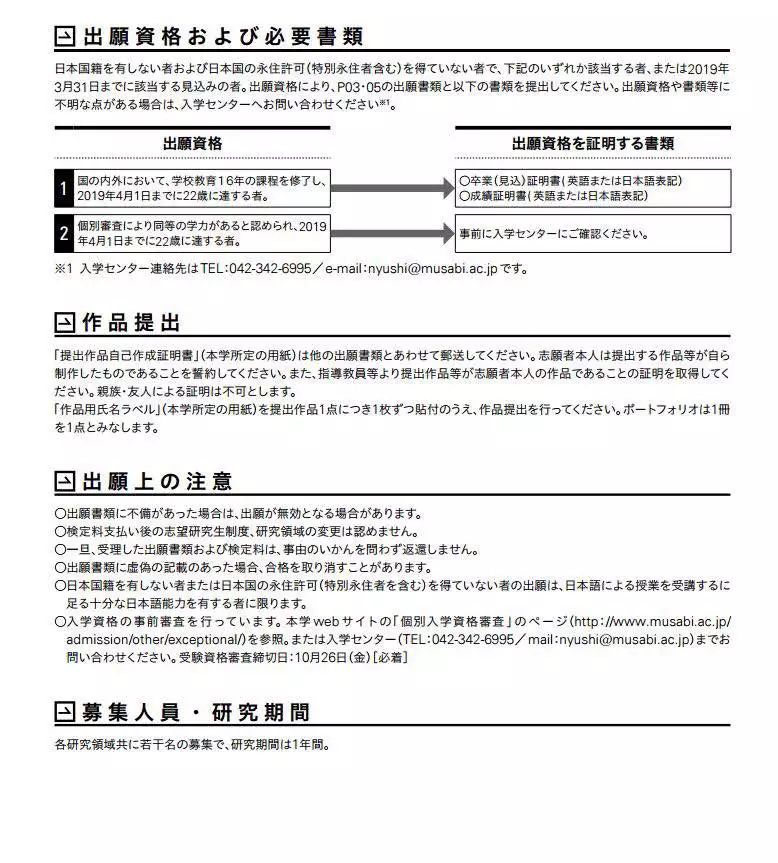 作品集:有关视觉设计的至少2份作品。如果是拍摄的动画或映像作品的话,需要将其概要压缩在5分钟左右+研究论文(非硬性要求,可自行决定提交或者不提交)